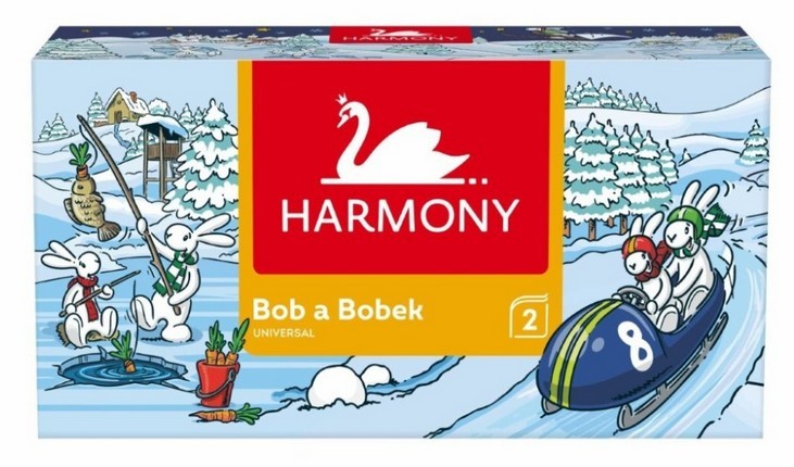 Papírové kapesníčky Harmony Universal Bob & Bobek jsou dvouvrstvé kapesníky vyrobené ze 100% celulózy. Každé balení obsahuje 150 ks kapesníčků v praktické krabičce, která umožňuje snadné vyjímání jednotlivých kusů.