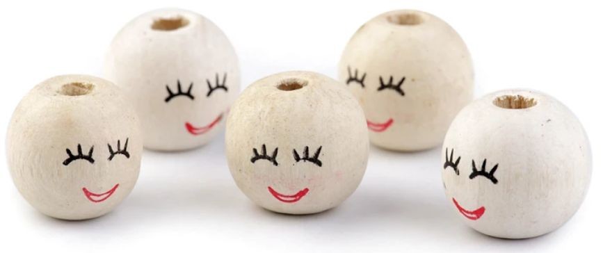 Dřevěné korálky s obličejem Ø18 mm, 5ks