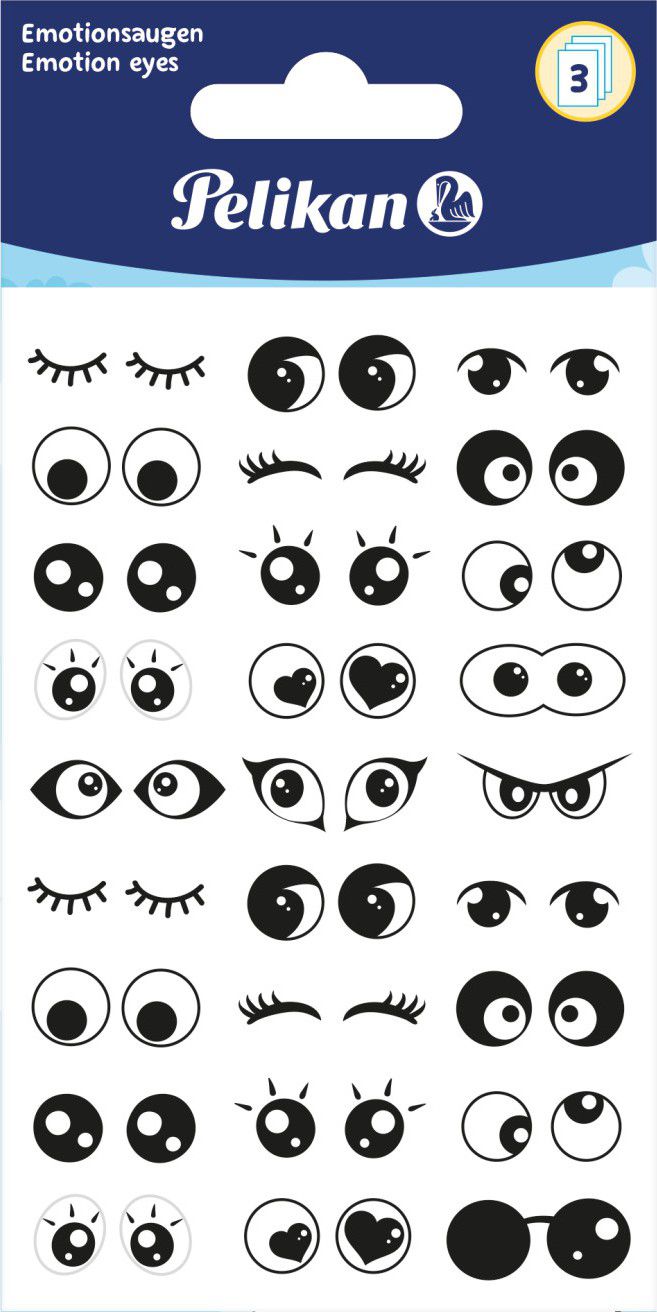 3 archy samolepek se samolepícími emocionálními oky v různých provedeních.