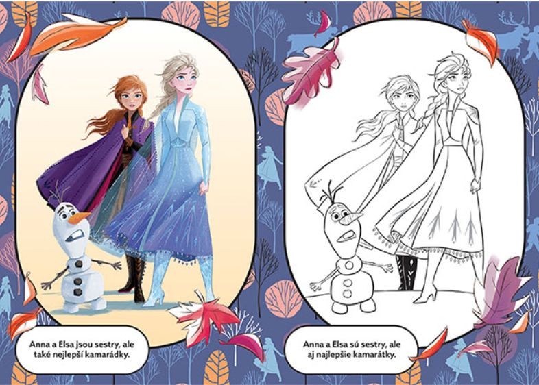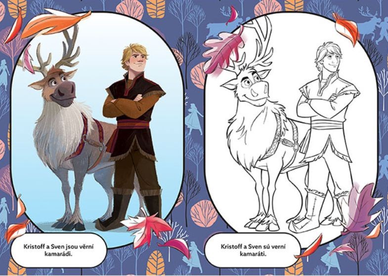 Omalovánky obsahují 9 černobílých obrázků k vybarvení a 9 barevných předloh.