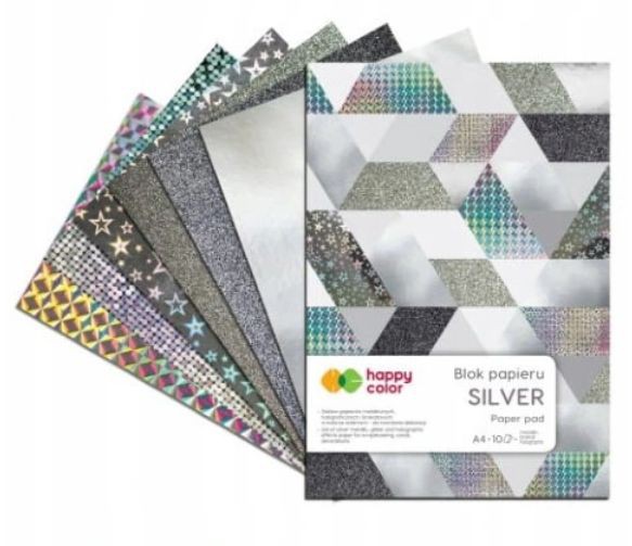 Blok stříbrných, metalických, holografických a glitrových papírů o velikosti A4