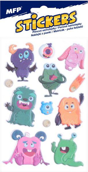 Samolepky s obrázky dinosaurů, příšerek, vesmíru, sportovního vybavení a dopravních prostředků. Vhodné jako dekorace do sešitu, bloku nebo přání. Vyzdobte si těmito krásnými samolepkami, které vynikají svou barevností cokoliv vás napadne, třeba dárek, obálku, přáníčko, sešit, mobil, zrcadlo aj.