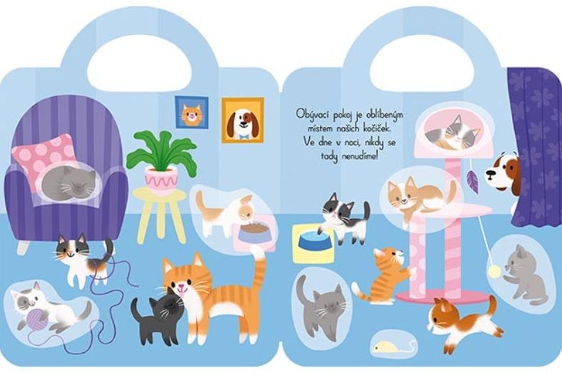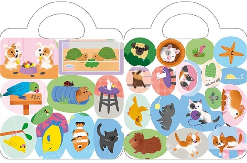 Samolepková knížka malého formátu obsahuje 12 barevných stran a více než 45 samolepek k dolepení a procvičení jemné motoriky nejmenších dětí.