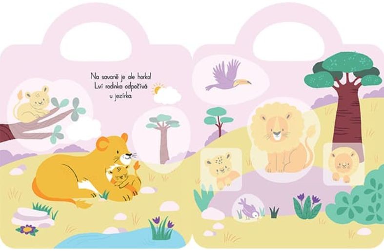 Samolepková knížka malého formátu obsahuje 12 barevných stran a více než 45 samolepek k dolepení a procvičení jemné motoriky nejmenších dětí.
