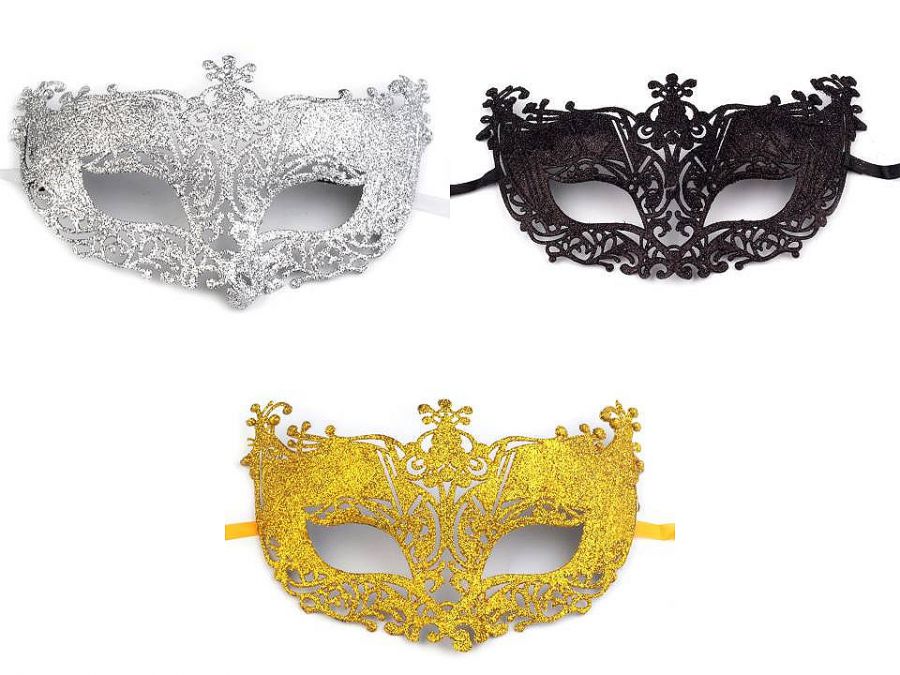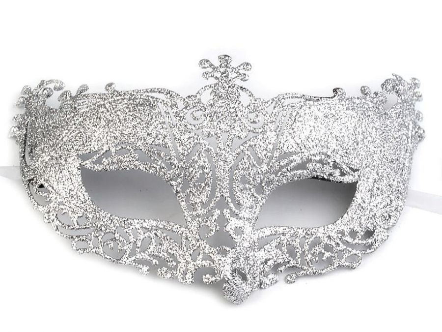 Karnevalová maska - škraboška s glitry 1 stříbrná, 1 ks