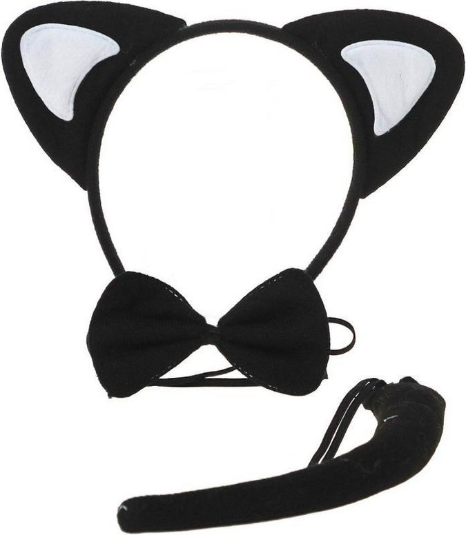 Čelenka s ušima, motýlek a ocásek, doplněk k dětskému karnevalovému kostýmu Černá kočka.
