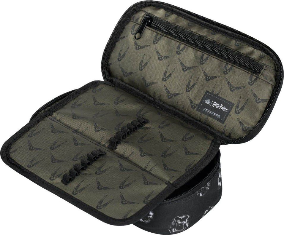 • Pevný školní penál s dvojitou výklopnou vnitřní přepážkou, uzavíratelný na jeden zip