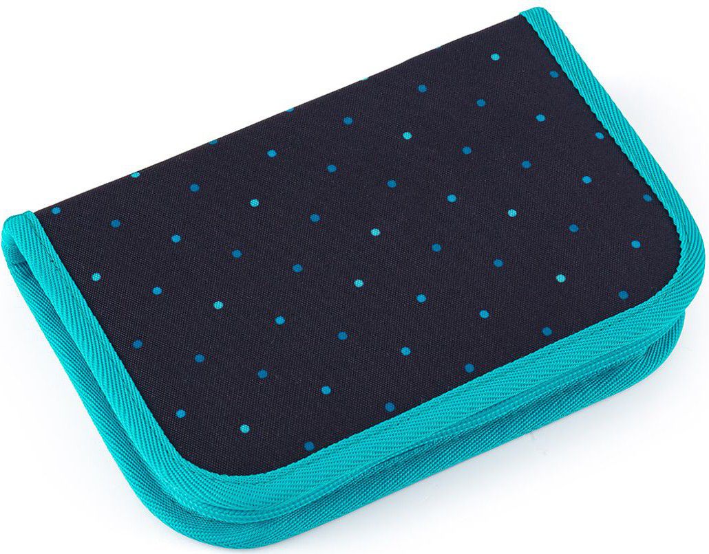 Jednopatrové školní pouzdro se dvěma klopami. Díky gumovým úchytům se do nich vejde celkem dvacetjedna pastelek, tužek a fixek. Tři širší úchyty poslouží na pravítko, kružítko či nůžky. Dva větší na gumu a ořezávátko.