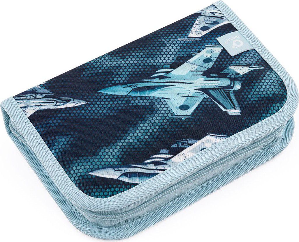 Jednopatrové školní pouzdro se dvěma klopami. Díky gumovým úchytům se do nich vejde celkem dvacetjedna pastelek, tužek a fixek. Tři širší úchyty poslouží na pravítko, kružítko či nůžky. Dva větší na gumu a ořezávátko.