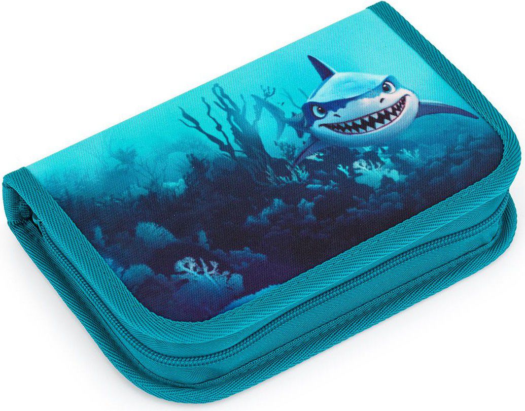 Jednopatrové školní pouzdro se dvěma klopami. Díky gumovým úchytům se do nich vejde celkem dvacetjedna pastelek, tužek a fixek. Tři širší úchyty poslouží na pravítko, kružítko či nůžky. Dva větší na gumu a ořezávátko.