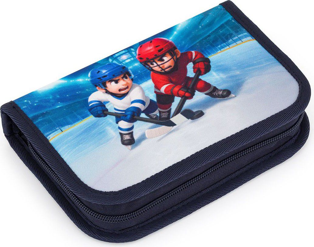 Jednopatrové školní pouzdro se dvěma klopami. Díky gumovým úchytům se do nich vejde celkem dvacetjedna pastelek, tužek a fixek. Tři širší úchyty poslouží na pravítko, kružítko či nůžky. Dva větší na gumu a ořezávátko.
