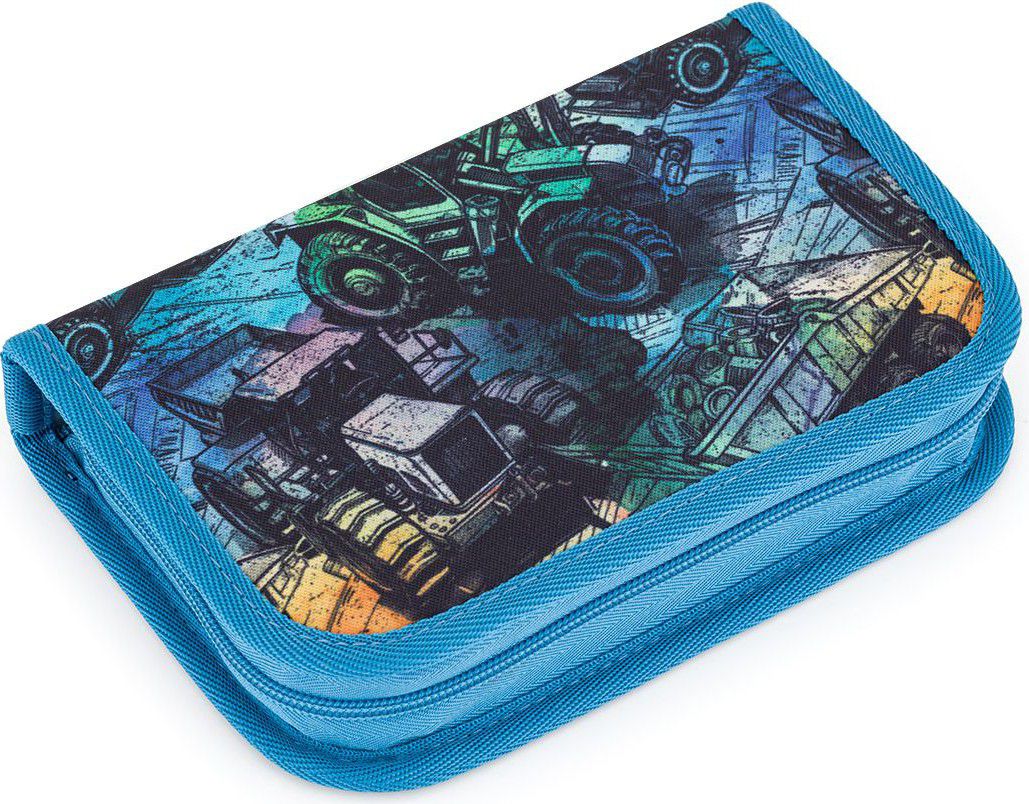 Jednopatrové školní pouzdro se dvěma klopami. Díky gumovým úchytům se do nich vejde celkem dvacetjedna pastelek, tužek a fixek. Tři širší úchyty poslouží na pravítko, kružítko či nůžky. Dva větší na gumu a ořezávátko.