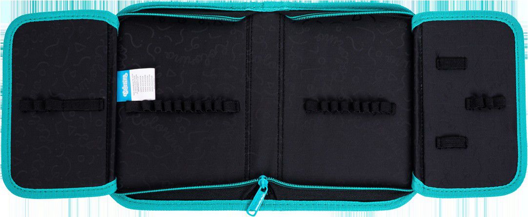 Rozkládací penál s přihrádkami na psací výbavu a jiné doplňky. Dvě postranní chlopně jsou opatřeny transparentní kapsou, chránící obsah penálu. Odolný kovový zip je sladěný s kontrastním s lemováním. Vybavení není součástí penálu.