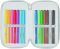 výplň 14 fixí, 8 šestihranných pastelek, 2 černé šestihranné tužky, 1 plastové ořezávátko, 1 guma, 1 plastové pravítko 17 cm, 1 trojúhelníkové pravítko, 1 úhloměr,