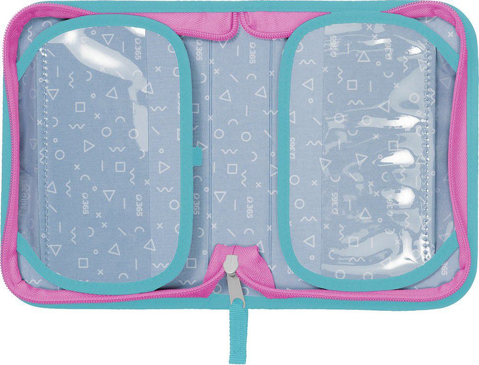 Chlopně mají na vnější straně průhlednou kapsičku na rozvrh či jiné malé dokumenty, na vnitřní straně je pak nová síťovaná kapsička pro uložení drobností.