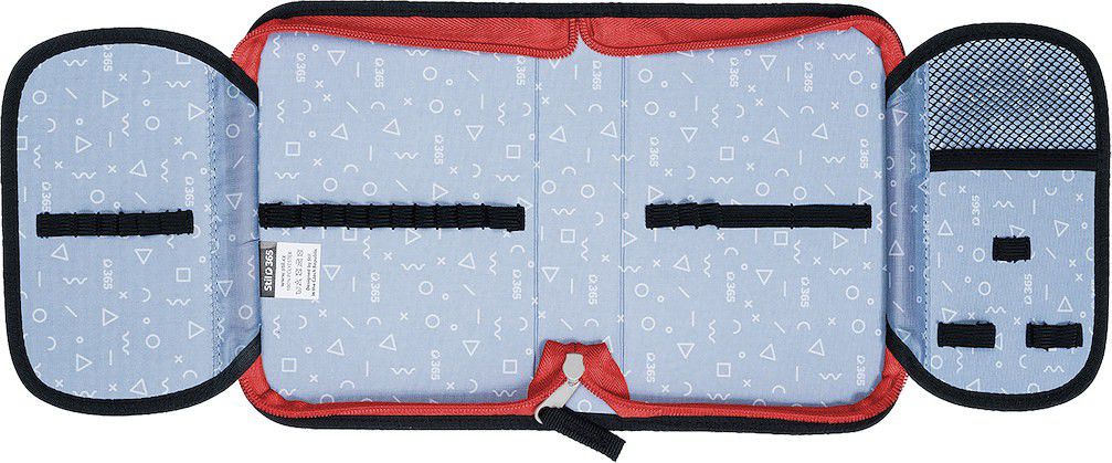 Přesně 24 pevných gumiček různých velikostí slouží k pohodlnému uložení pastelek, psacího pera, tužek, pravítka, ořezávátka a gumy.