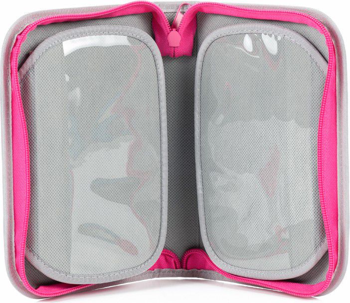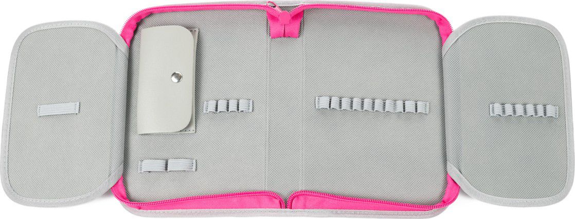 Jednopatrové penály mají velkou kapacitu k umístění psacích potřeb. 23 pevných gumiček různých velikostí k pohodlnému uložení větších pastelek nebo psacího pera, pravítka, ořezávátka a gumy. Vnitřní dvě chlopně mají na vnější straně průhlednou kapsičku na rozvrh či jiné malé dokumenty. Na vnitřní straně je kapsička na drobnosti, uzavíratelná patentem. Novinka: zipy jednopatrových penálů jsme letos vylepšili šňůrkou na jezdci zipu, který usnadní dětským prstům otevírání a zavírání penálu. Dokonale barevně sladěný design s aktovkou či batohem je samozřejmostí.