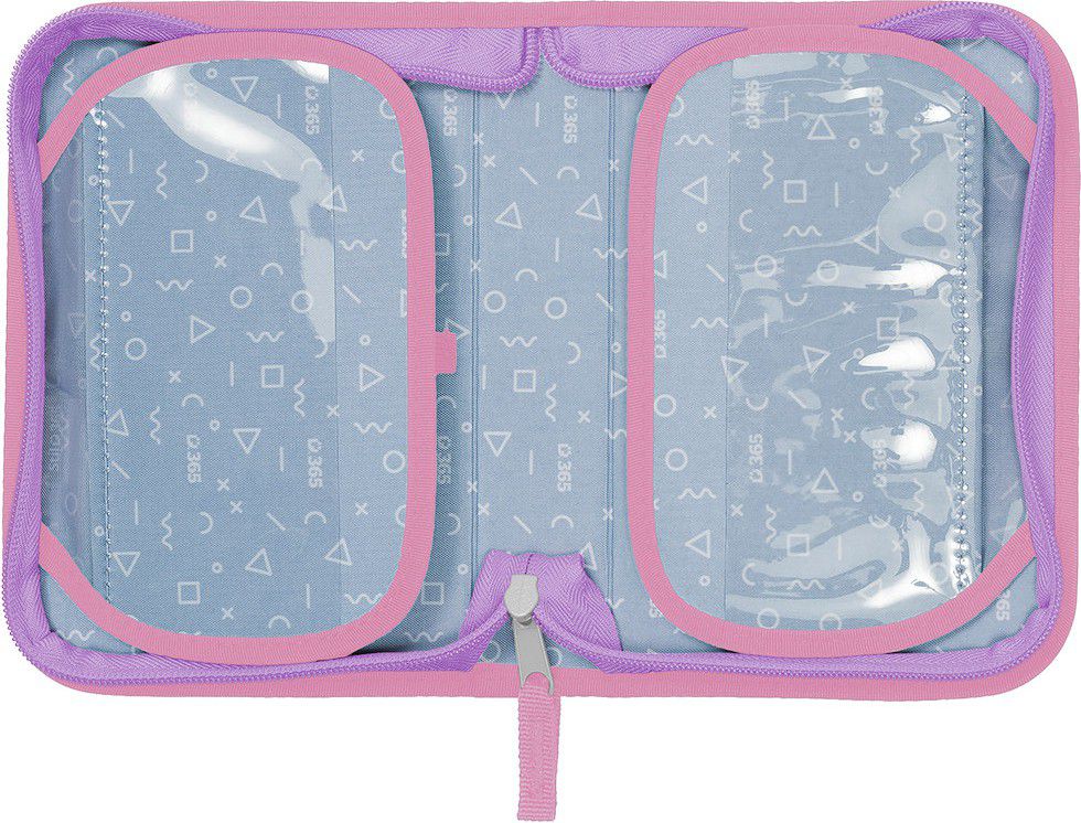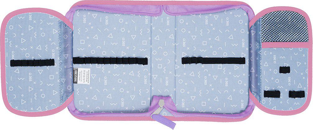Přesně 24 pevných gumiček různých velikostí slouží k pohodlnému uložení pastelek, psacího pera, tužek, pravítka, ořezávátka a gumy.