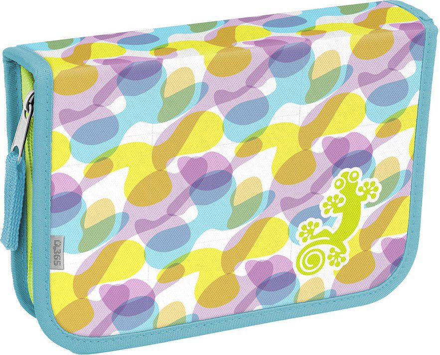 Přesně 24 pevných gumiček různých velikostí slouží k pohodlnému uložení pastelek, psacího pera, tužek, pravítka, ořezávátka a gumy.