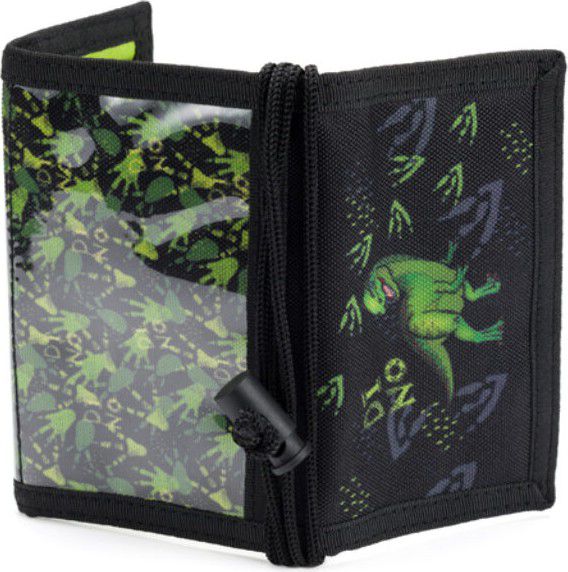 Peněženka se zavře suchým zipem a zavěsí na krk látkovou šňůrkou.