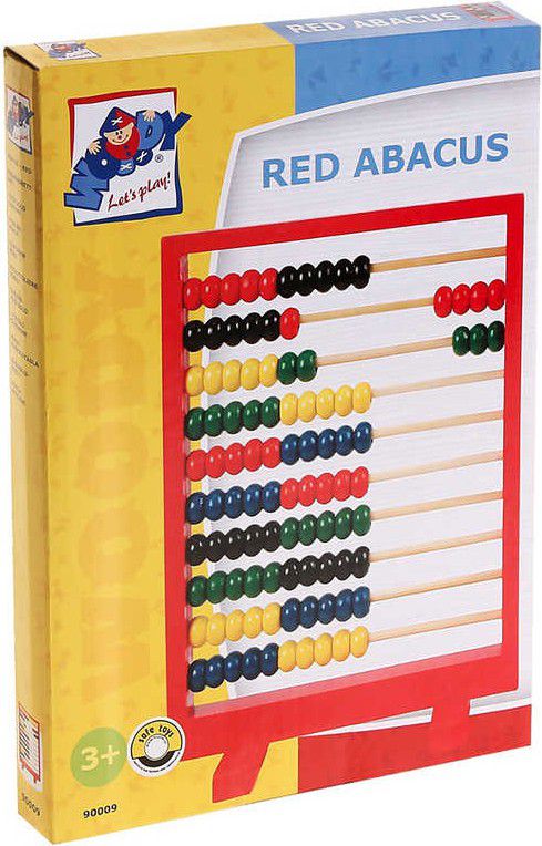 Barevné počítadlo ze dřeva pro děti, v červeném rámu.