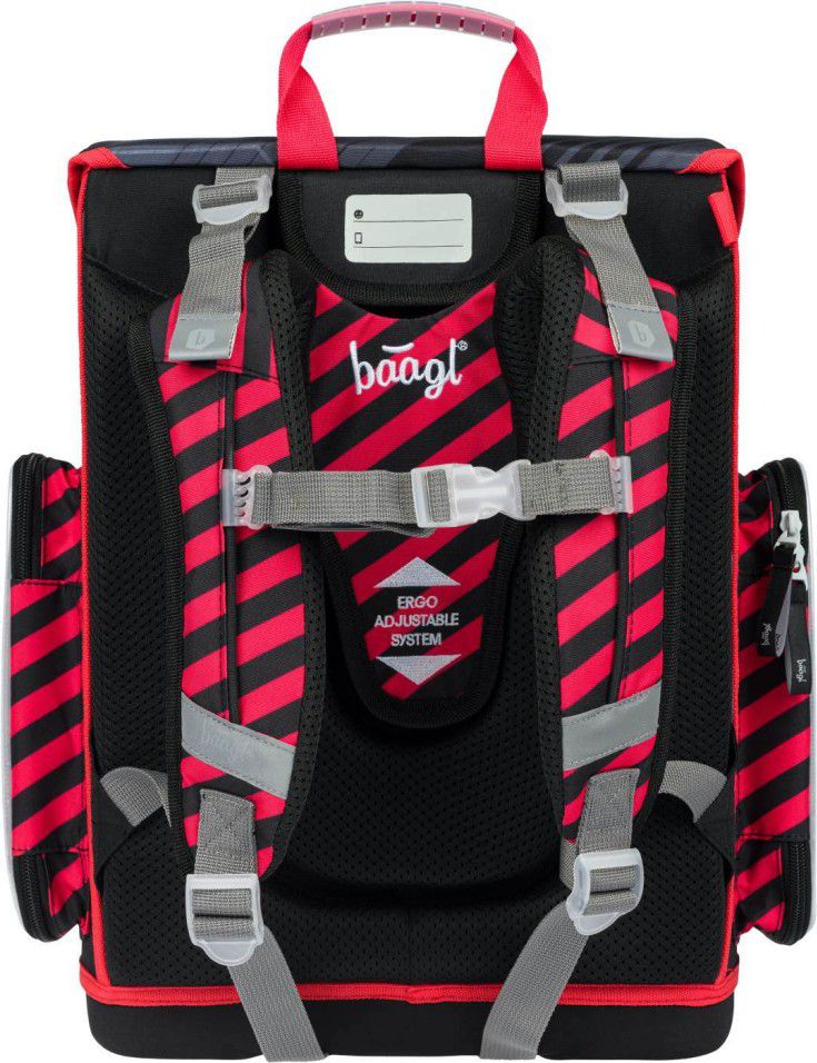 - Uvnitř aktovky je průhledná kapsa s rozvrhem a vnitřní organizér umožňující rovnoměrné rozložení hmotnosti.