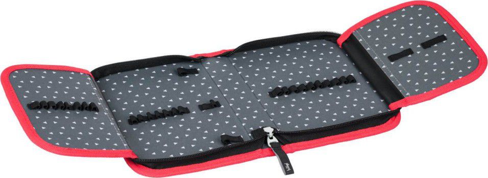 - Klasický školní jednopatrový penál s dvěma chlopněmi.