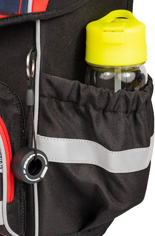 - Po obou stranách batohu se nalézají kapsy na deštník nebo lahev s pitím. Kapsy svým umístěním a elastickými okraji pomáhají eliminovat riziko rozlití nápoje a poničení obsahu aktovky.