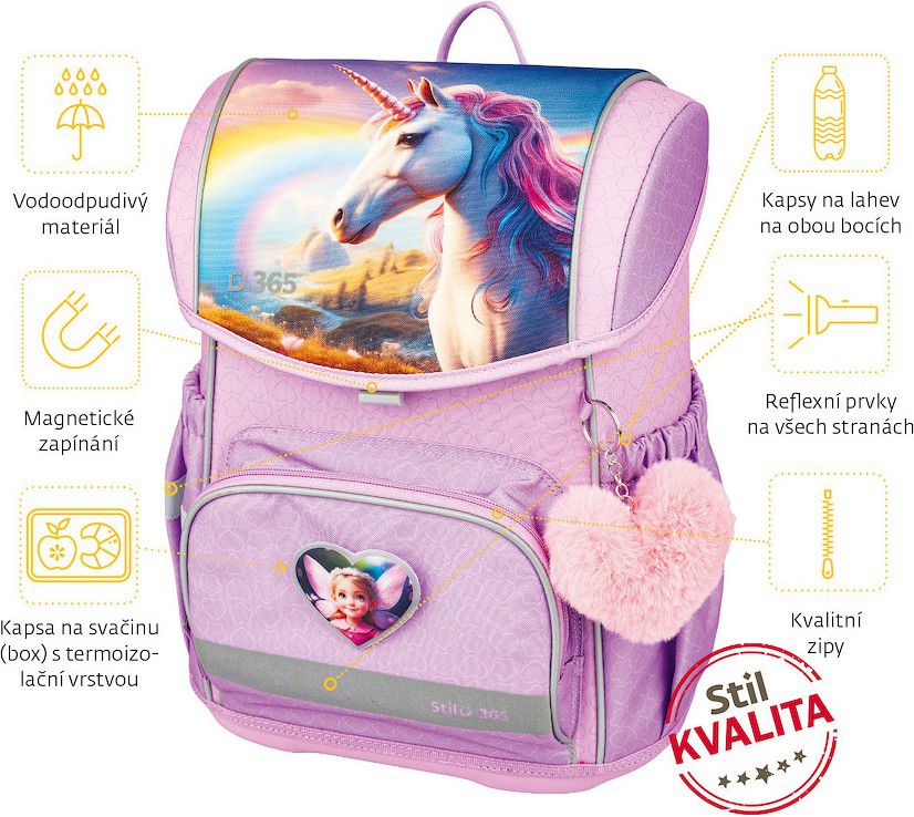 Školní aktovky jsou navrženy tak, aby byly nejen praktické, ale i hravé! Chlupatý přívěsek ve tvaru srdce dodává aktovce jemný a hravý vzhled. Vyměnitelná aplikace na suchý zip navíc umožňuje měnit design podle chuti – další aplikace lze u nás dokoupit samostatně.