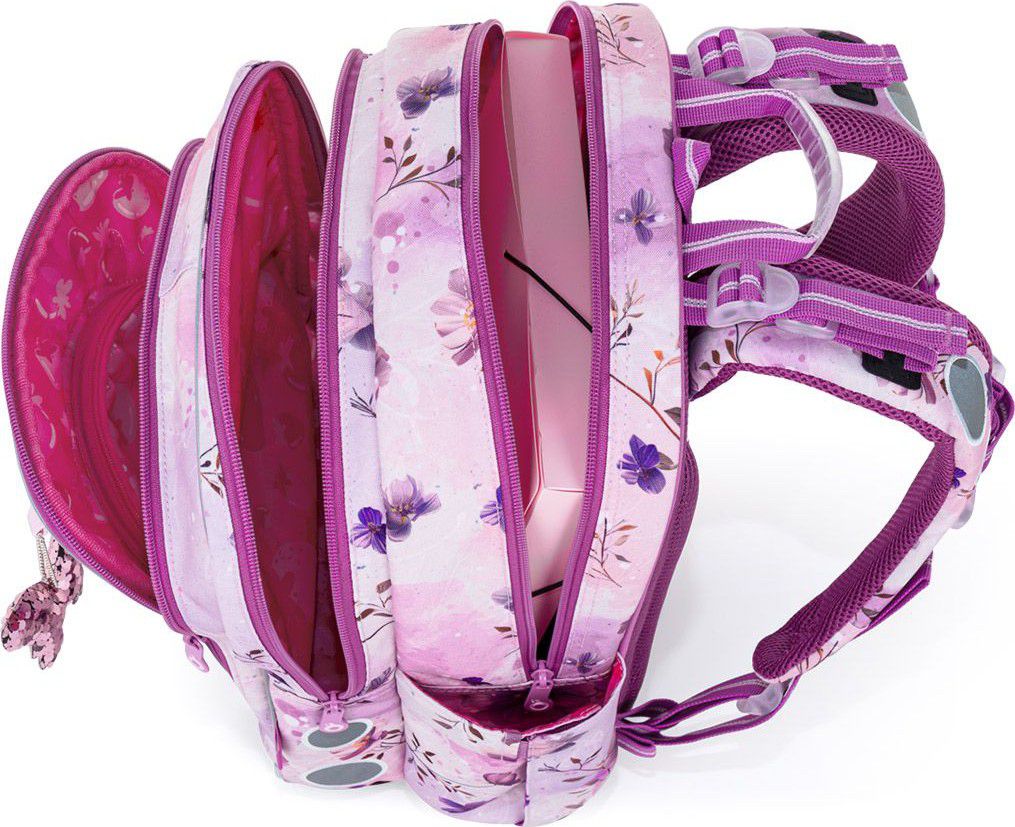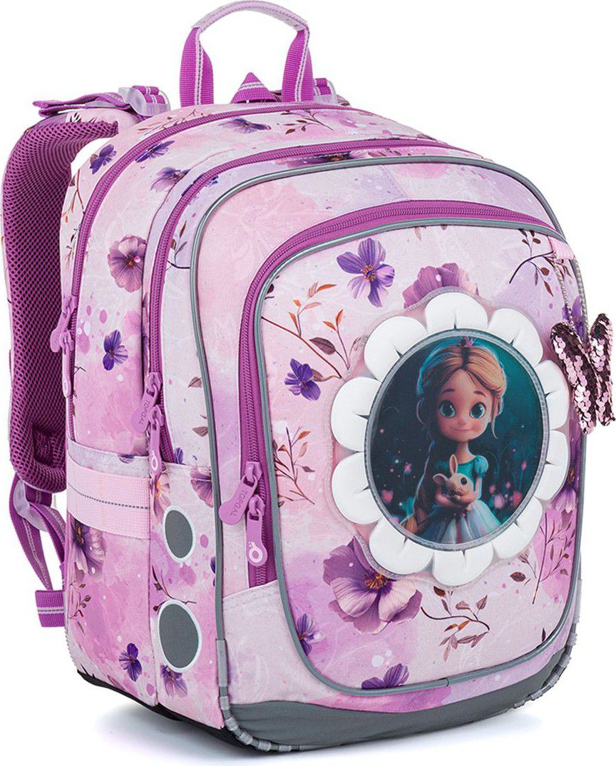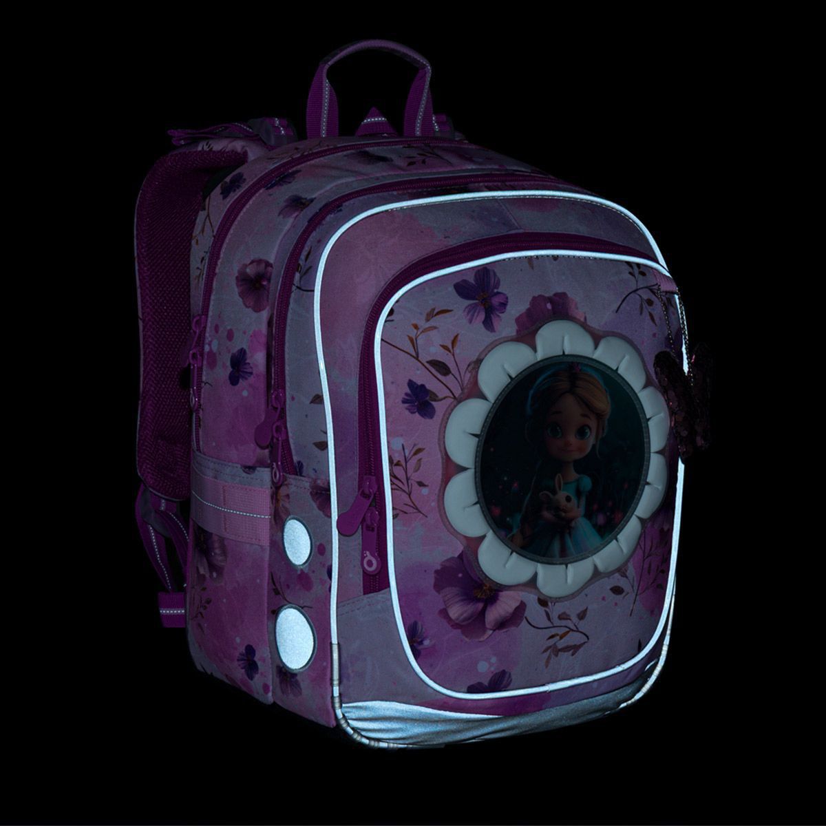Lehoučký dvoukomorový model ENDY 26003 váží jen něco málo přes kilogram a perfektně padne drobným školačkám od první do třetí třídy základní školy. Jemný květinový motiv s kouzelnou vílou a třpytivým detailem dělá z batohu krásný doplněk, který si malé slečny zamilují na první pohled.