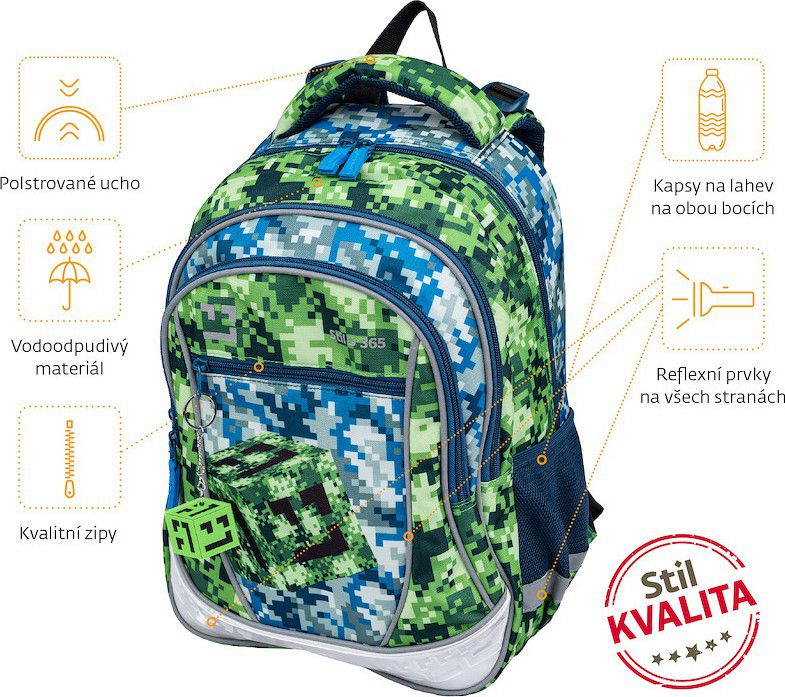 Hravý styl, který baví. Batoh Prime Craftboy je doplněn veselým přívěskem, jenž oživuje jeho design a dělá z něj nepřehlédnutelného parťáka do školy i na volný čas.