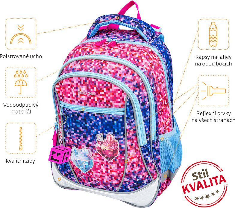 Barevný, moderní a nepřehlédnutelný. Hravý styl, který baví. Batoh Prime Craftgirl je doplněn veselým přívěskem, jenž oživuje jeho design a dělá z něj nepřehlédnutelného parťáka do školy i na volný čas.