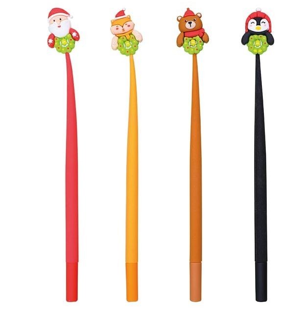 Zábavné gelové pero s modrou náplní a vánočními motivy.
