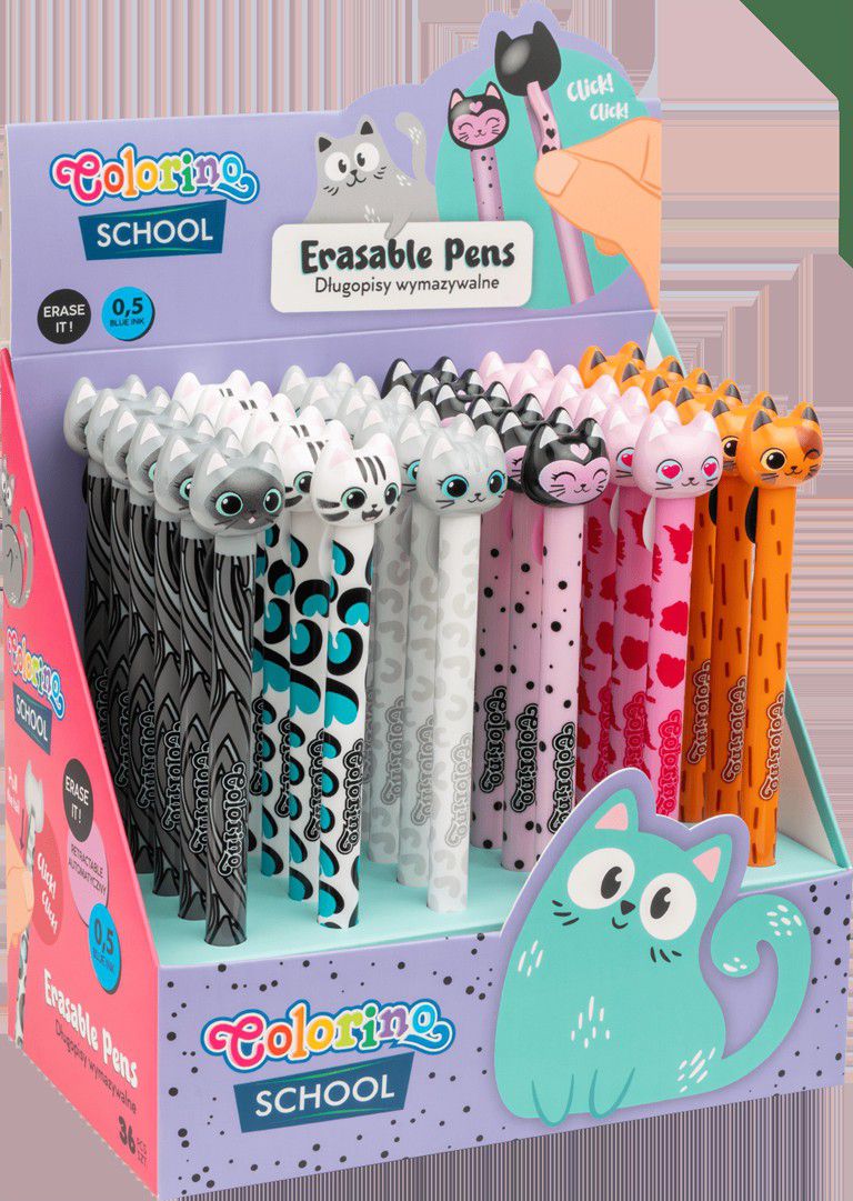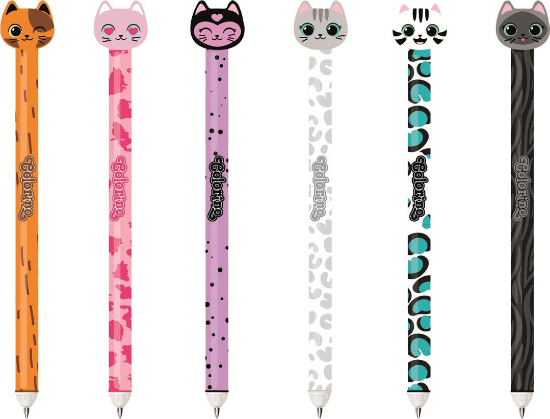 Gumovatelná pera s veselou koncovkou ve tvaru kočičí hlavy. Pro zapnutí pera jednoduše zatáhni za ocásek a můžeš se pustit do psaní.