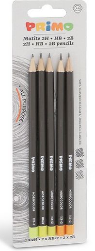 Tužky PRIMO sada 5ks-1x2H,2xHB,2x2B