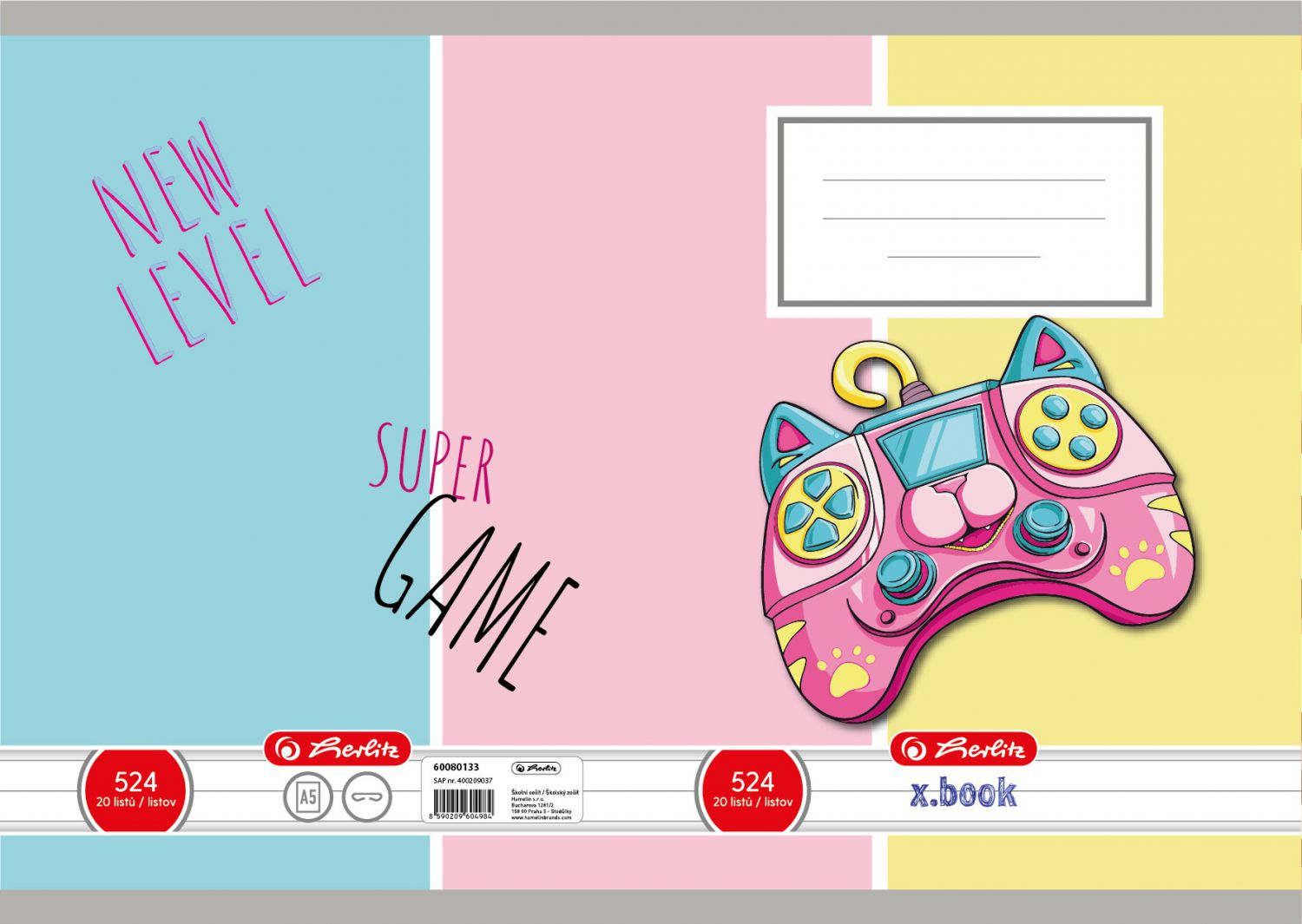 Motivy květin, gamepadu, psa, kočky nebo lišky dodávají sešitu hravý a osobitý vzhled.