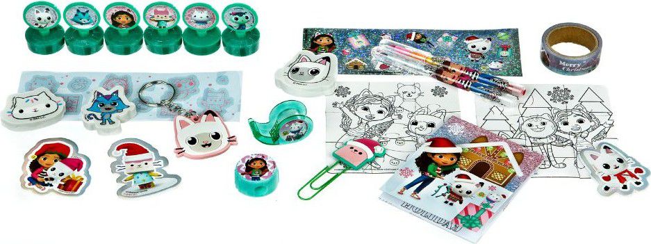 Kalendář obsahuje celkem 24 drobností: mini puzzle, razítka, samolepky, pop-up tužku a pastelku, malý poznámkový blok, archy nálepek, odvíječ s lepicí páskou, washi pásku, gumy, dopisovou sponu, klíčenku a klip.