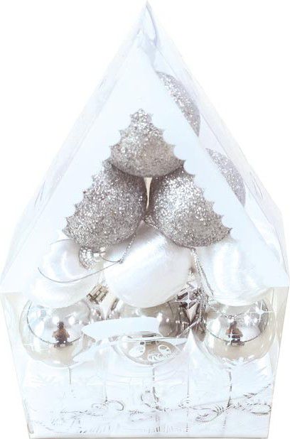 BALENÍ OBSAHUJE: 6 ks různých stříbrných baněk, 6 ks bílých baněk.