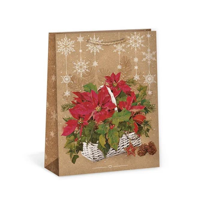 Vánoční papírová dárková taška NATUR s originálním designem.