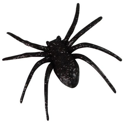 Malí plastoví, třpytiví pavouci v černé barvě, jsou senzační dekorací na Halloweenskou párty!