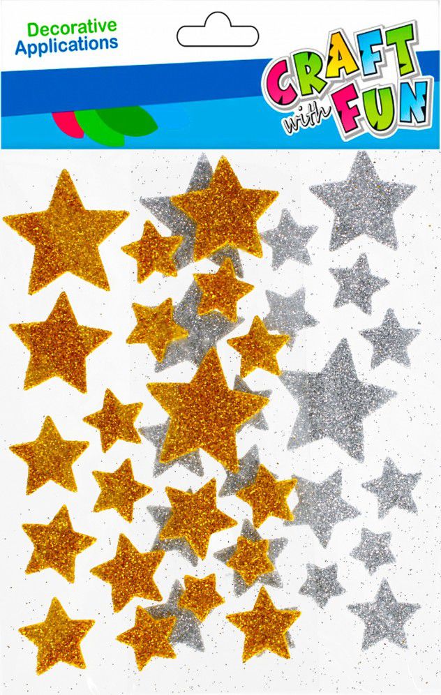 Perfektní pro zdobení vánočních přání, skvěle se hodí i jako dekorační prvek do dětského pokoje nebo vánoční doplňky. Všechny dekorace jsou opatřeny samolepicí páskou. Měkké pěnové samolepky od CRAFT WITH FUN. Živé barvy, rozmanitost tvarů a vzorů dávají prakticky nekonečné množství možností jejich použití. Používejte tyto produkty ve spojení s dalšími doplňky a sadami ze série CRAFT WITH FUN Obsah balení: mix pěnových třpytivých hvězd. Všechny prvky jsou vyrobeny z pěny.