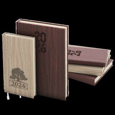 Originální denní diář s přírodním motivem dřeva a ražbou je vyráběný z jemně strukturovaného materiálu s efektním výsekem uvnitř. Má velký prostor pro poznámky a plánování. Výjimečností tohoto diáře je, že soboty i neděle jsou na každé stránce zvlášť.