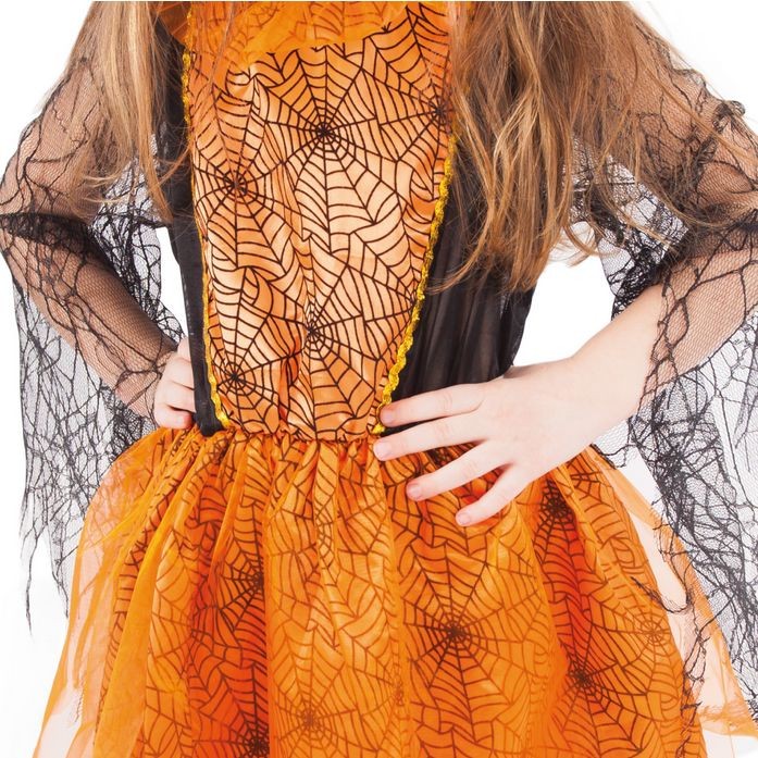 Kostým černo-oranžové barvy ve velikosti S je určen pro holčičky ve věkovém rozmezí 4-6 let (105-116 cm).