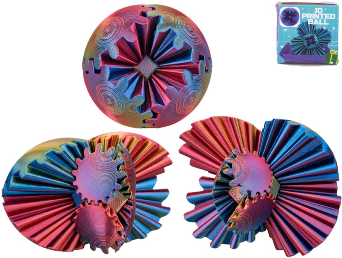 Při rozložení se míček transformuje do spirálovitého, fraktálového tvaru odhalujícího komplexní systém zubatých kol.
