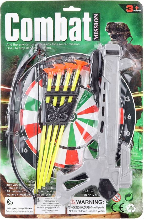 - Obsah balení: kuše (2 díly), šíp s přísavkou, držák na šípy, terč
