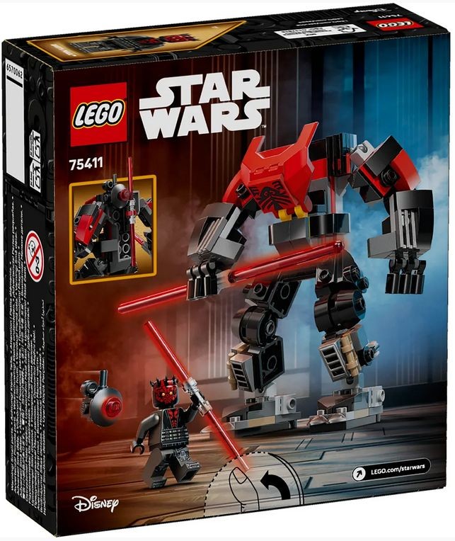 Děti a fanoušci od 6 let objeví temnou stranu Síly se stavebnicí LEGO Star Wars Darth Maul a jeho robotický oblek. Tento snadno sestavitelný pohyblivý robotický oblek vypadá jako Darth Maul v bitvách o planetu Mandalore v seriálu Star Wars: Klonové války. Robotický oblek má otevírací kokpit pro minifigurku LEGO Star Wars Dartha Maula, klip na červený světelný meč s dvojitým ostřím pro minifigurku a ruce, které drží velký červený světelný meč s dvojitým ostřím. Připojte na zadní část robotického obleku průzkumného droida LEGO Star Wars a užijte si ještě větší porci zábavného hraní na postavy. Darth Maul a jeho robotický oblek je součástí řady robotických obleků LEGO Star Wars (prodávají se samostatně) a představuje skvělý dárek pro děti a fanoušky k jakékoli příležitosti.