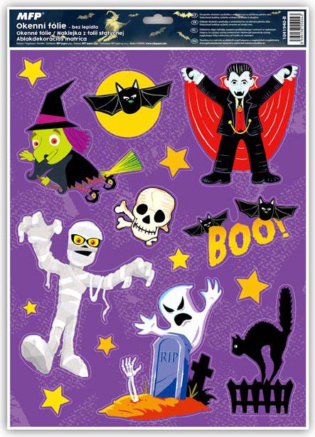 Okenní fólie glitrové - Halloween. Vyzdobte si okno těmito krásnými samolepkami na okno. Vytvoří Vám tu pravou halloweenskou atmosféru.