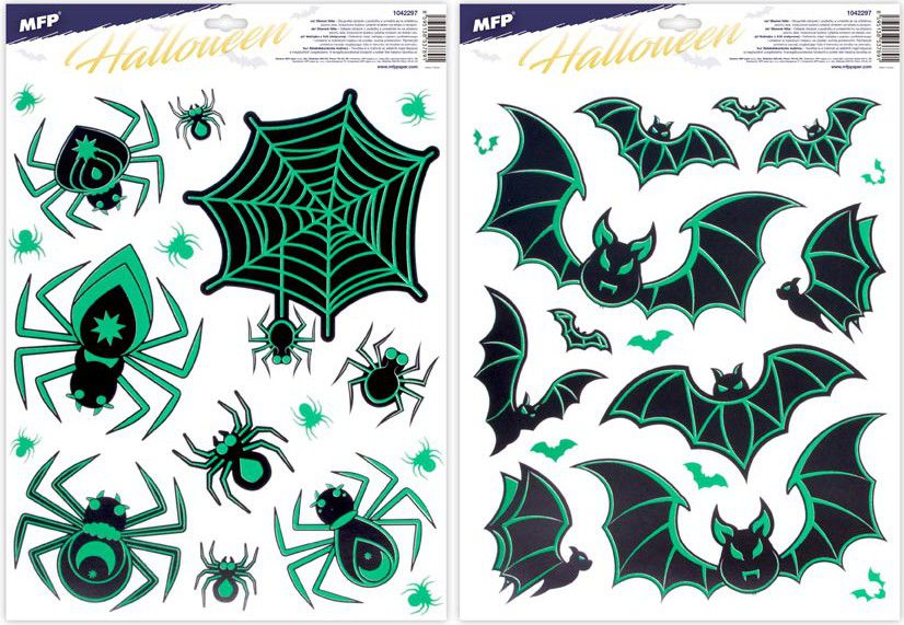Okenní fólie svítící - Halloween s motivem pavouků a netopýrů. Vytvoří Vám tu pravou halloweenskou atmosféru.