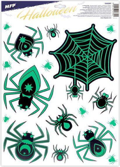 Okenní fólie svítící - Halloween s motivem pavouků a netopýrů. Vytvoří Vám tu pravou halloweenskou atmosféru.