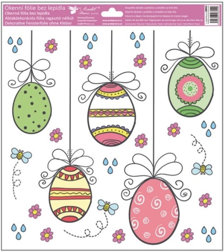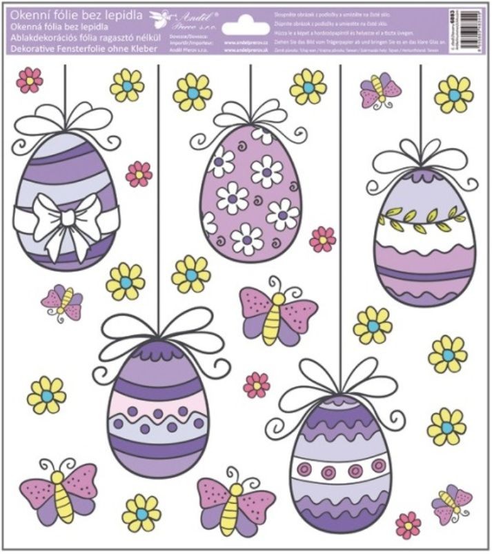 Tato okenní fólie s glitry a motivem velikonočních vajíček o rozměru 30 × 33,5 cm rozjasní vaše okna třpytivou jarní výzdobou.